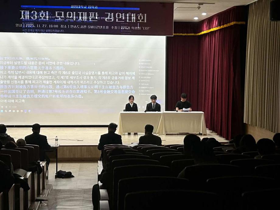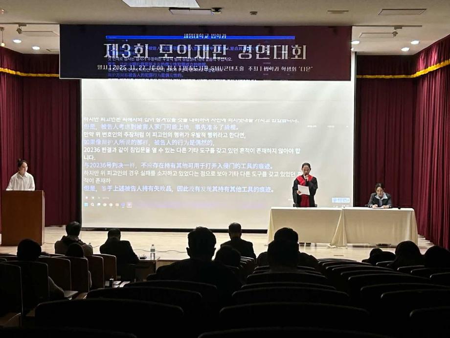 본문 시작 홈으로 커뮤니티 학과안내 교수소개 학과과정 커뮤니티 홈페이지가이드 학과사진첩 공지사항 취업정보 학과사진첩 학과행사 동아리 학생회 교우소식 학과사진첩 페이스북 트위터 프린트 2025학년도 제3회 법학과 모의재판 경연대회 법학과 335 2025-12-03 2025년 11월 27일 민송도서관 1층 콘텐츠홀에서 법학과 모의재판 경연대회 진행하였습니다. 참여하신 모든 분들 고생 많으셨습니다. 목록 이전2025학년도 법학과 특강 담당부서 : 법학과 담당자 : - 연락처 : 043-649-1764 최종수정일 : 2024-10-26 만족도조사 만족도 조사 이 페이지에서 제공하는 정보에 대하여 만족하시나요? 매우만족 만족 보통 불만족 매우불만족