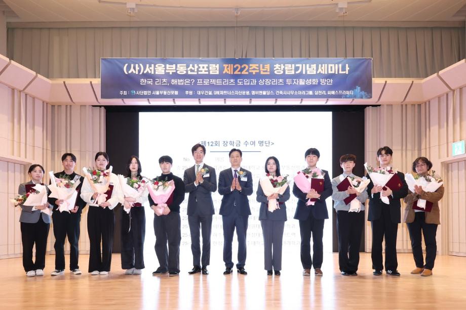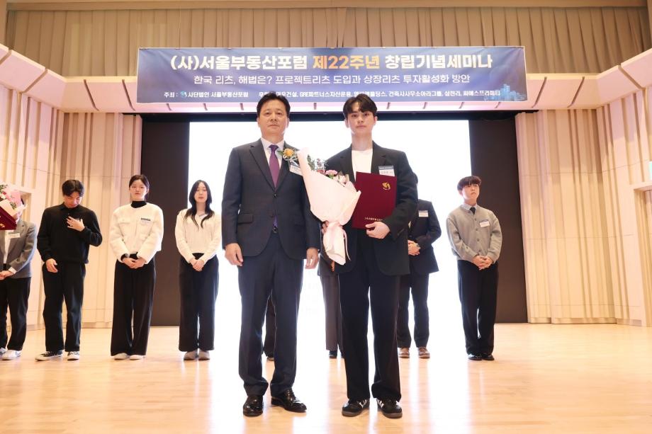 본문 시작 홈으로 학과 소식 학과소개 취업 및 진로 언론 및 보도 학과 소식 대학원 홈페이지가이드 행사사진게시판 행사사진게시판 공지사항 일반자료실 강의자료실 부동산학보 동아리 행사사진게시판 페이스북 트위터 프린트 제12회 서울부동산포럼 부동산지적학과 김관호 학생 장학생 선발 부동산지적학과 226 2025-11-07 행사명 : 제12회 서울부동산포럼 부동산학과 김관호 학생 장학생 선발 일시 : 2025.11.06. (목요일) 13:30 ~16:30 내용 : 부동산지적학과 3학년 김관호 학생이 서울부동산포럼에서 주관하는 '장학생'으로 선발되었습니다. 성실하게 학업과 학교생활에 임해온 학생은 이번 선발로 장학금 100만 원을 수여받았습니다. 학과는 장학생 선발을 진심으로 축하하며, 앞으로도 학업과 다양한 활동에 매진할 것을 응원합니다. 작성자: 부동산지적학과 조교 목록 다음 2025학년도 부동산컨설팅 특강 다음 2025년 2학기 도시경제부동산 대학원 종강모임 담당부서 : 부동산지적학과 담당자 : - 연락처 : 043-649-1369 최종수정일 : 2024-10-26 만족도조사 만족도 조사 이 페이지에서 제공하는 정보에 대하여 만족하시나요? 매우만족 만족 보통 불만족 매우불만족