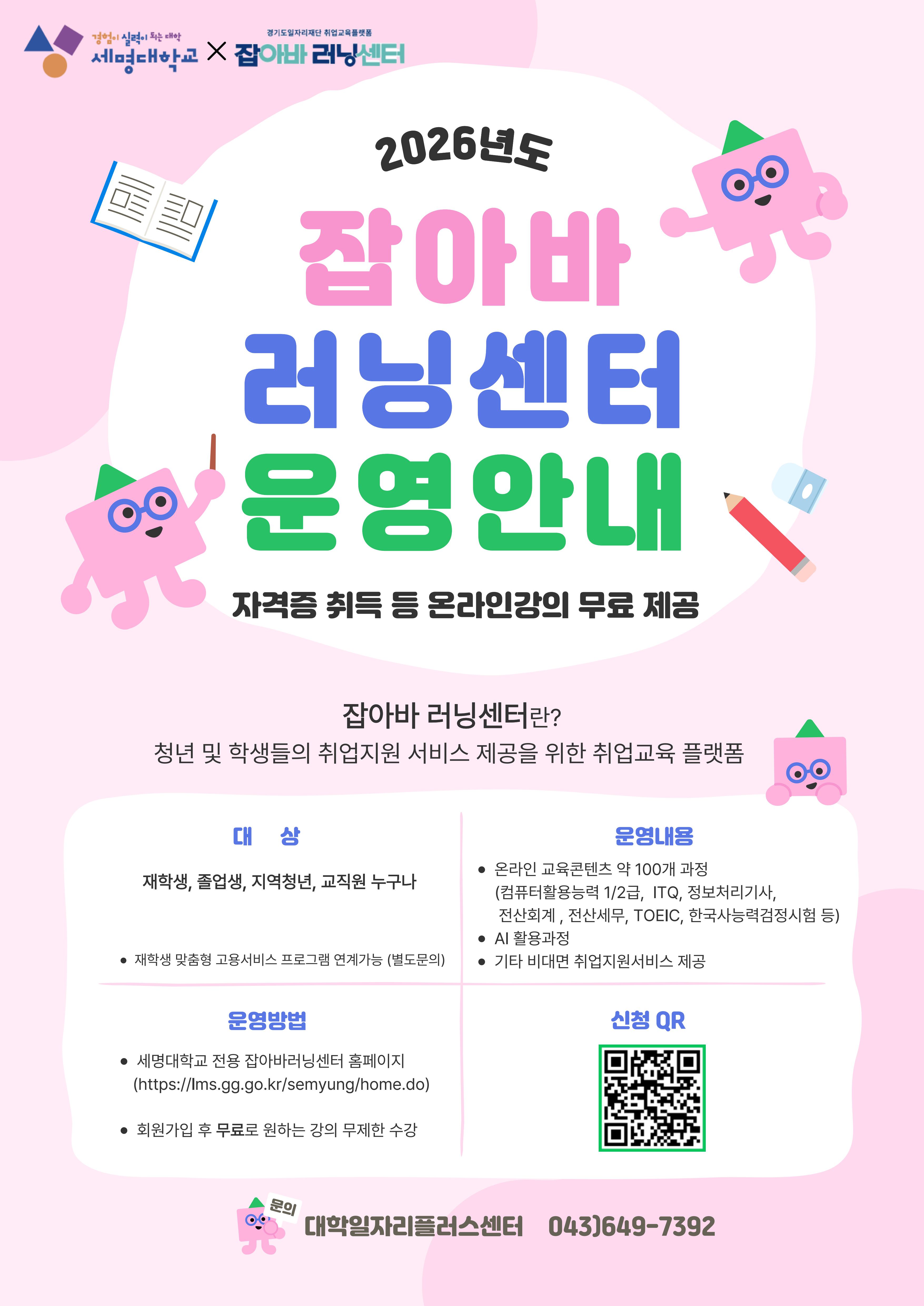 ★자기계발, 진로·취업에 도움이 되는<2026년 잡아바 러닝센터> 운영 안내★
