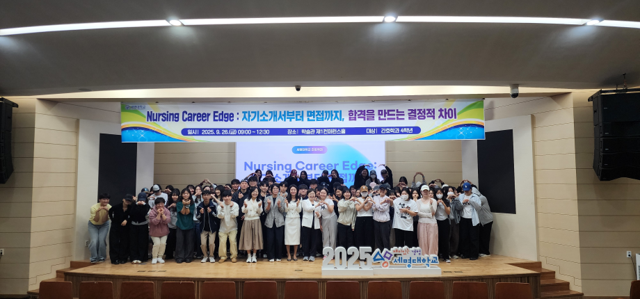 본문 시작 홈으로 커뮤니티 학과소개 교수소개 교육과정 학과소식 학과특성화 사업 커뮤니티 홈페이지가이드 포토갤러리 학사일정 포토갤러리 학생회 학과동아리 학과 취업정보 동창회 학과운영개선의견 발전기금 포토갤러리 페이스북 트위터 프린트 S-BOOT 취업 특강 💼 간호학과 252 2025-09-30 김순애 간호국장님께서 병원 취업 성공 사례를, 조연희 수간호사님께서는 자기소개서 작성과 면접 준비에 대한 현실적인 조언을 전해주셨습니다. 특강을 통해 꿀팁 얻고, 모두 취업까지 성공하세요! 목록 이전간호학과 청룡체전 준우승🎉 담당부서 : 간호학과 담당자 : 서예지 연락처 : 043-649-1357 최종수정일 : 2024-10-26 만족도조사 만족도 조사 이 페이지에서 제공하는 정보에 대하여 만족하시나요? 매우만족 만족 보통 불만족 매우불만족