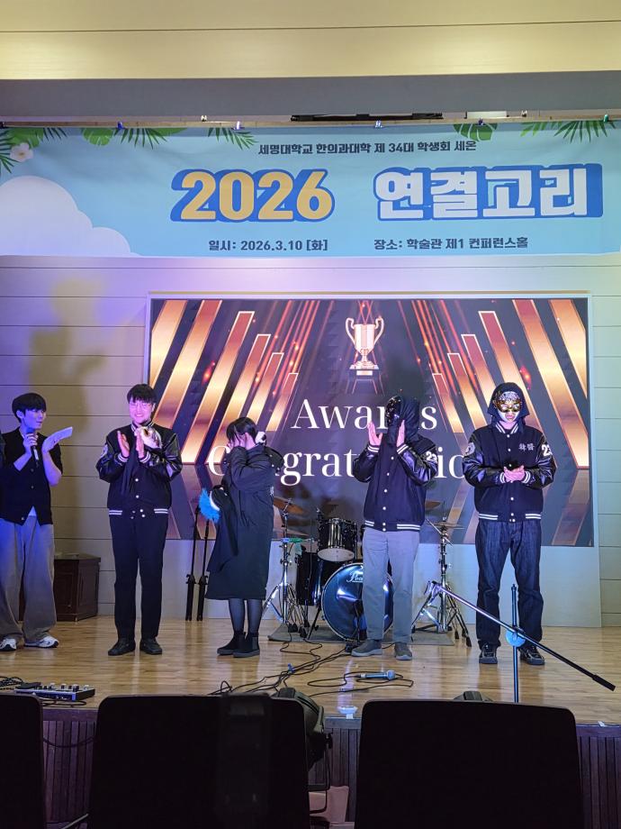 본문 시작 홈으로 대학소식 대학소개 교수소개 대학과정 커뮤니티 대학원 대학소식 홈페이지가이드 포토갤러리 학과공지 포토갤러리 발전기금 위원회 관련사이트 포토갤러리 페이스북 트위터 프린트 2026년 연결고리 행사 한의과대학 40 2026-03-13 2026년 3월 10일 화요일 한의과대학에서는 신입생들의 학교생활 적응을 돕기 위해 한의대 학생회 주관으로 재학생들과 친해지기, 한의대 동아리 소개 및 공연 등으로 이루어진 연결고리 행사를 개최하였습니다. 신입생들과 재학생들에게 소중한 추억으로 남았기를 바랍니다. 목록 이전2026년 한의과대학 신입생 대상 꿈 설계학기 진행 담당부서 : 한의과대학 담당자 : - 연락처 : 043-649-1701 최종수정일 : 2024-10-26 만족도조사 만족도 조사 이 페이지에서 제공하는 정보에 대하여 만족하시나요? 매우만족 만족 보통 불만족 매우불만족