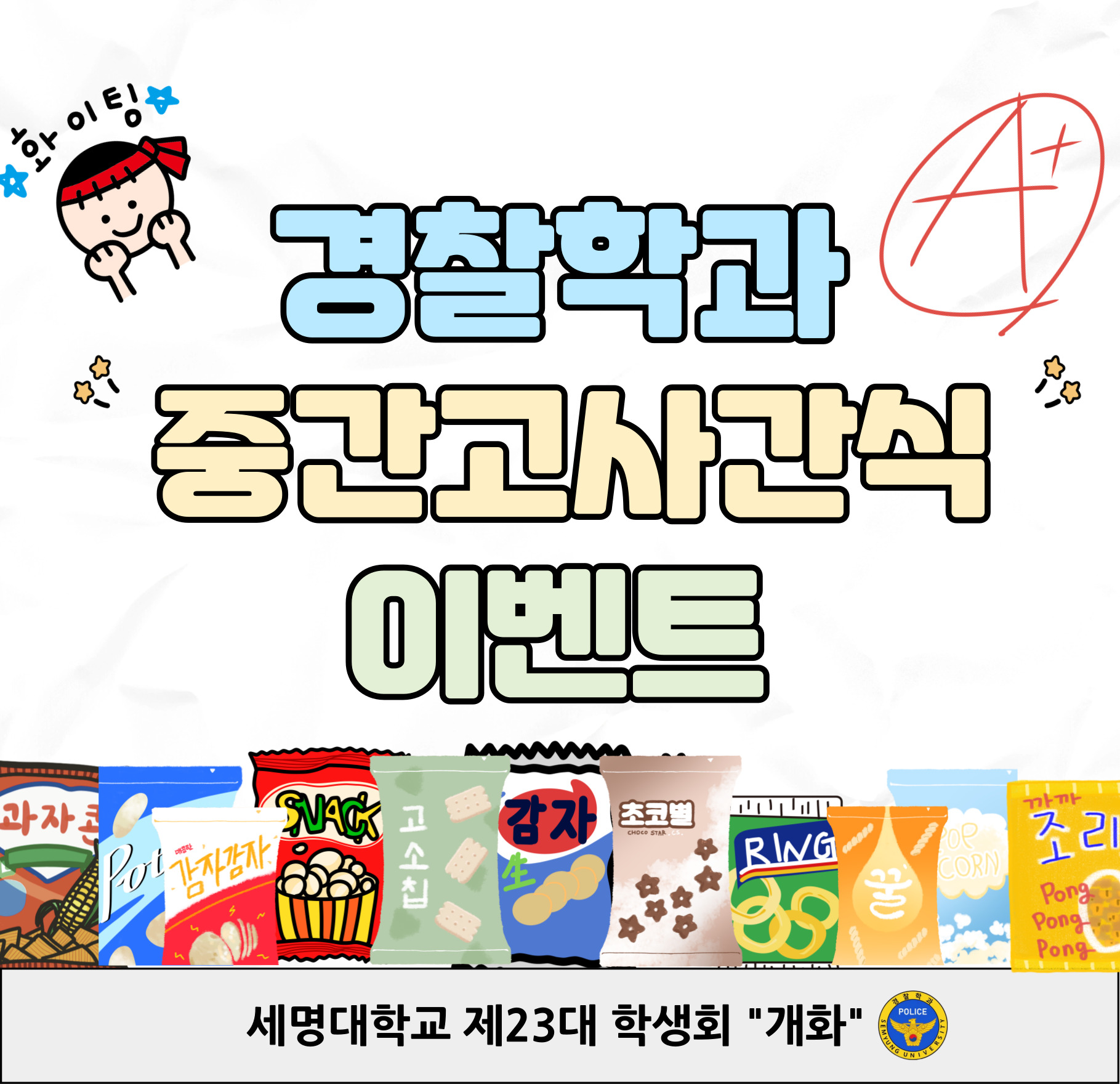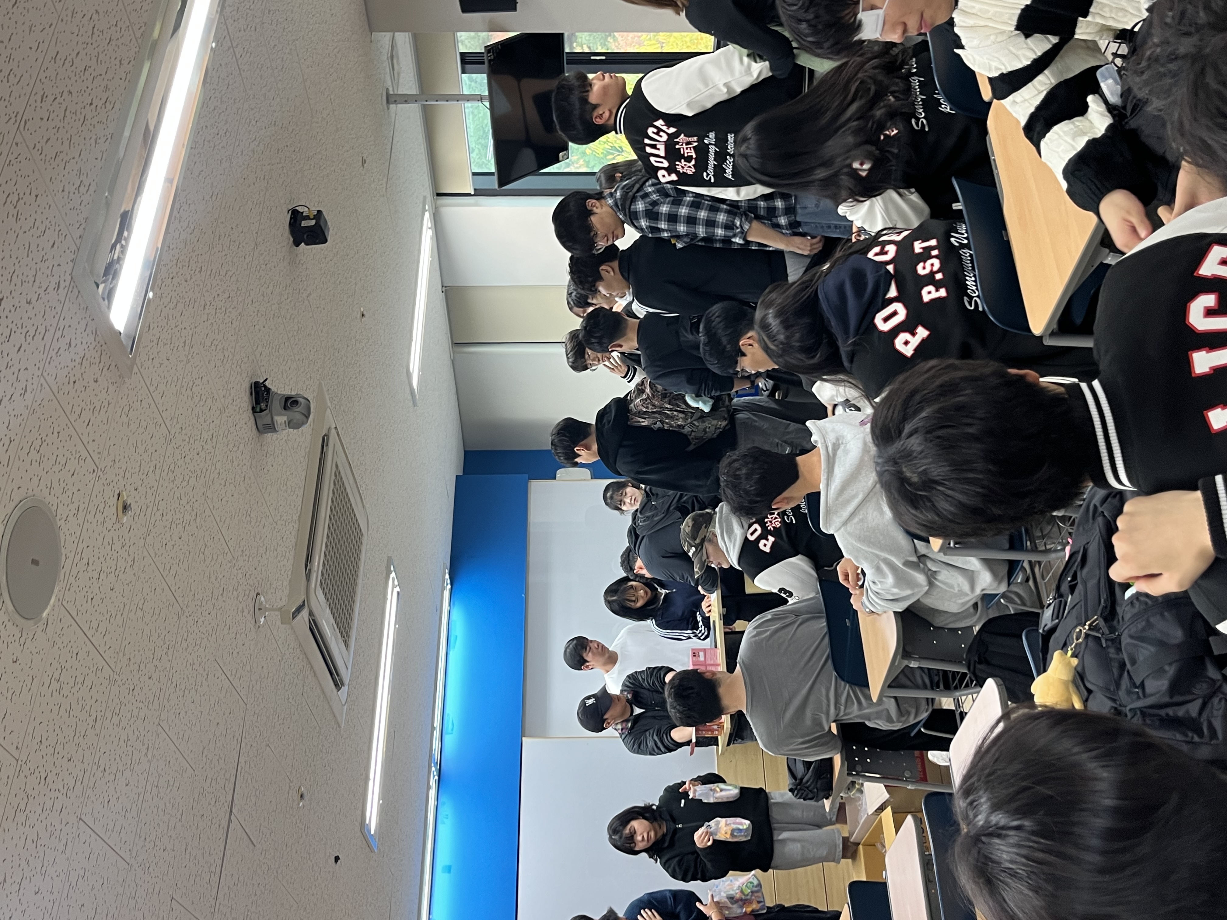 본문 시작 홈으로 커뮤니티 학과소개 교수소개 학과과정 커뮤니티 홈페이지가이드 학부공지 학부공지 학과일정 포토갤러리 학생회 동아리 학부공지 페이스북 트위터 프린트 중간고사 간식 이벤트 경찰학과 조회 : 4 등록일 : 2025-10-16 안녕하십니까 세명대학교 경찰학과 제23대 학생회 '개화'입니다. 지난 10월 15일, 중간고사 간식 이벤트를 진행하였습니다. 기타 문의 사항은 연락해 주시면 답변해 드리겠습니다. 목록 다음 청룡체전 종합우승 다음 캄보디아 방문 및 체류 주의 안내 만족도조사 만족도 조사 이 페이지에서 제공하는 정보에 대하여 만족하시나요? 매우만족 만족 보통 불만족 매우불만족
