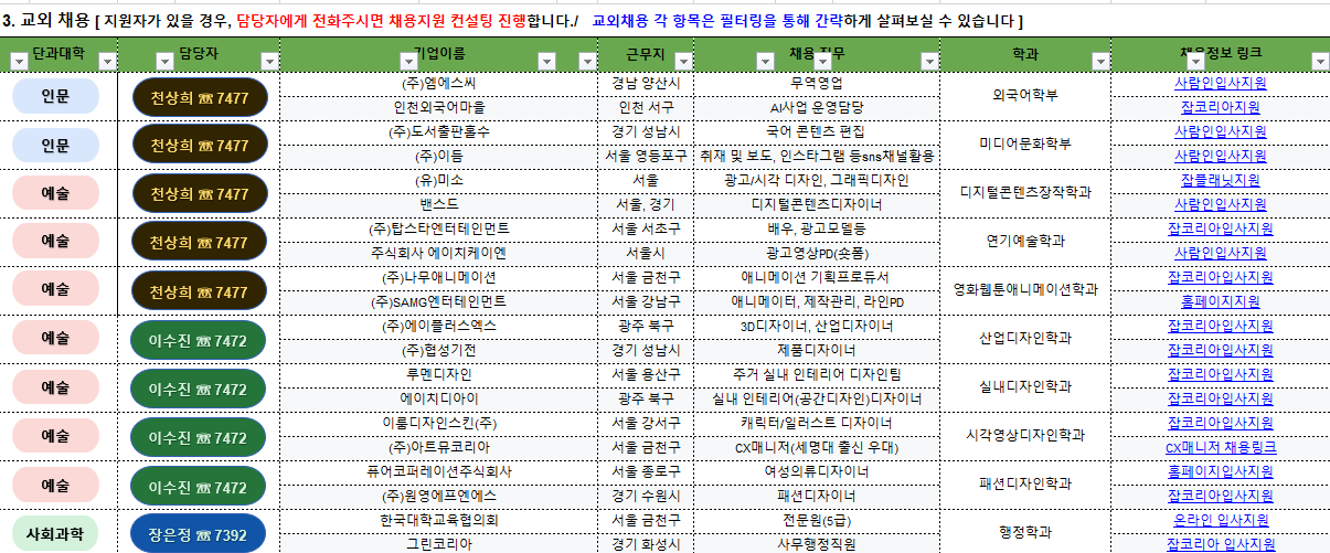 본문 시작 홈으로 시영소식 학과소개 학과과정 시영소식 입학/AI 학과자랑 SNS소통 홈페이지가이드 공지사항 공지사항 취업지금 학과행사 공모전 공지사항 페이스북 트위터 프린트 세명 JOB 통통(11월 下) 시각영상디자인학과 조회 : 5 등록일 : 2025-11-15 세명 JOB 통통(11월 下).xlsx ( 634 kb) ?atchFileId=FILE_000000000232699&fileSn=0 세명 JOB 통통(11월 下).xlsx 매월 발행하는 취업소식지이오니 첨부 엑셀파일 확인 이용바랍니다 목록 이전2025학년도 2학기 인문 100년 및 예술체육비전 일시 지원한 학기 지원 장학금 신청안내 담당부서 : 시각영상디자인학과 담당자 : - 연락처 : 043-649-1726 최종수정일 : 2024-10-26 만족도조사 만족도 조사 이 페이지에서 제공하는 정보에 대하여 만족하시나요? 매우만족 만족 보통 불만족 매우불만족