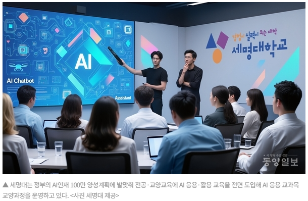 세명대(총장 권동현)는 정부의 AI인재 100만 양성계획에 발맞춰 전공·교양교육에 AI 응용·활용 교육을 전면 도입해 AI 기반 융합형 인재양성 체계를 구축한다.
