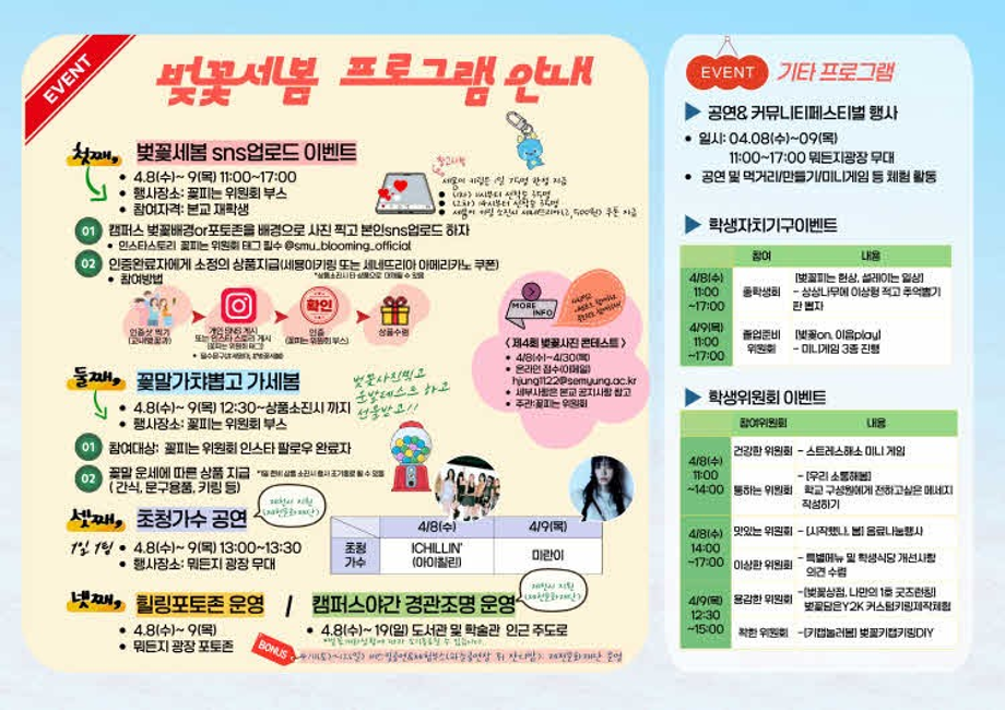 본문 시작 홈으로 학과생활 학과소개 교수소개 교과과정 학과생활 홈페이지가이드 사진게시판 공지사항 사진게시판 전공자료실 동아리 학과행사 사진게시판 페이스북 트위터 프린트 [벗꽃축제] 제 5회 세명대학교 벚꽃축제 '벚꽃세봄' 개최 아트앤산업디자인학과 172 2026-04-03 목록 이전[학생처] 우리 대학 '텃밭 가꾸기' 프로그램(분양) 안내 다음 [학생처] 제11회 커뮤니티 페스티벌 담당부서 : 산업디자인학과 담당자 : - 연락처 : 043-649-1436 최종수정일 : 2024-10-26 만족도조사 만족도 조사 이 페이지에서 제공하는 정보에 대하여 만족하시나요? 매우만족 만족 보통 불만족 매우불만족