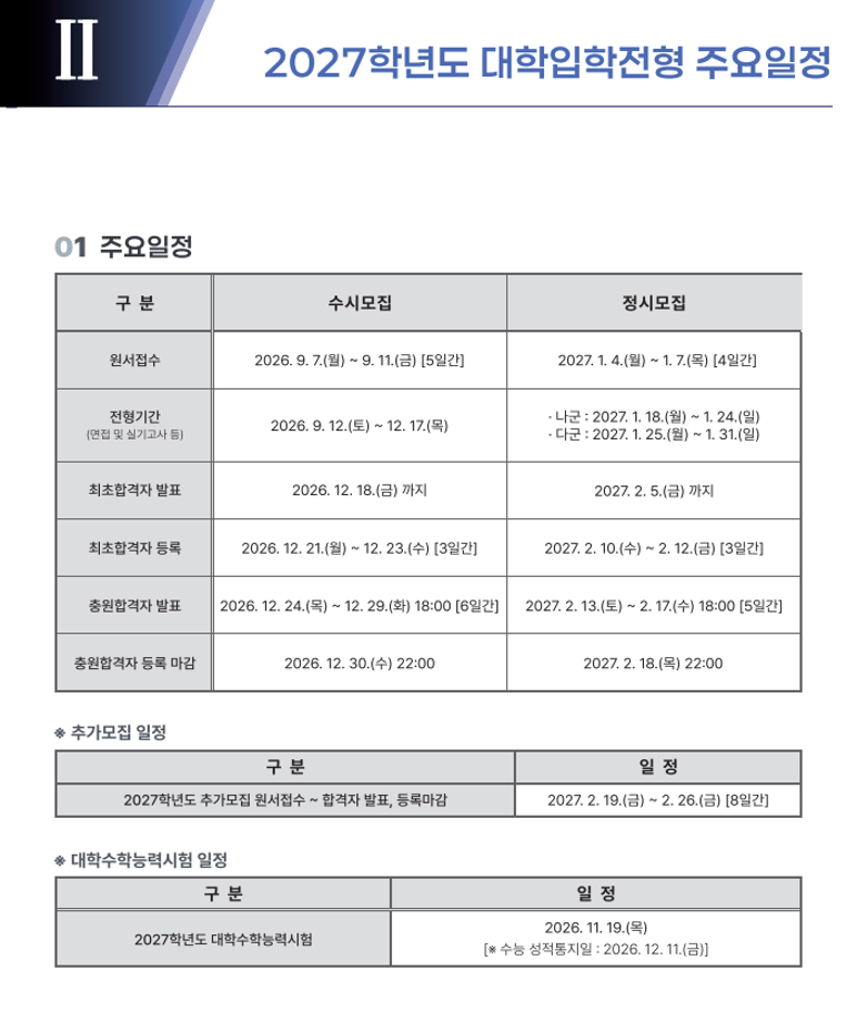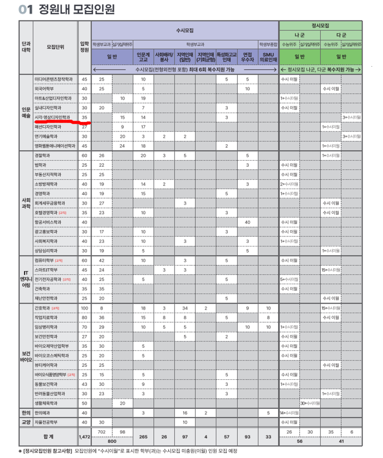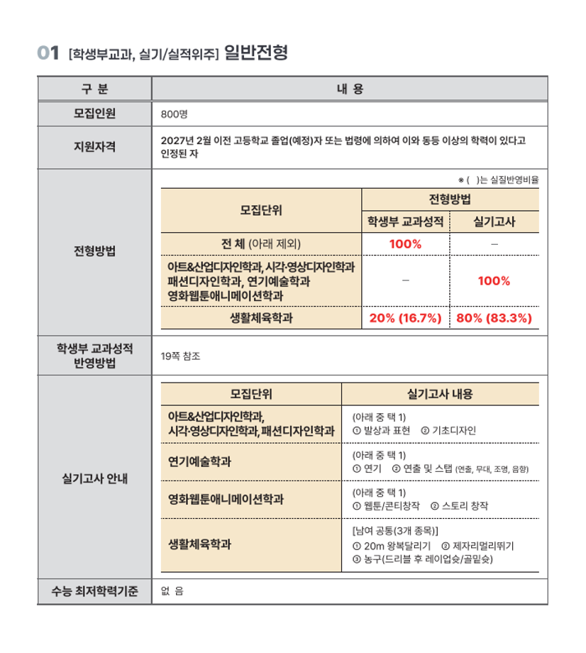 본문 시작 홈으로 입학/취업 학과소개 학과과정 시영소식 입학/취업 AI 학과자랑 SNS소통 홈페이지가이드 입학여기 입학여기 취업지금 전공소개 입학여기 페이스북 트위터 프린트 2027학년도 대학입학전형 시행계획 시각영상디자인학과 79 2026-04-03 본교 2027학년도 대학입학전형 시행계획입니다 첨부파일에 자세한 내용있으니 확인바랍니다~ https://www.semyung.ac.kr/cop/bbs/BBSMSTR_000000000350/selectBoardArticle.do?bbsId=BBSMSTR_000000000350&nttId=472634&bbsTyCode=&bbsAttrbCode=&kind=&mno=sitemap_12&pageIndex=1&searchCnd=&searchWrd= 목록 이전2026학년도 신입생 입학식 안내 만족도조사 만족도 조사 이 페이지에서 제공하는 정보에 대하여 만족하시나요? 매우만족 만족 보통 불만족 매우불만족