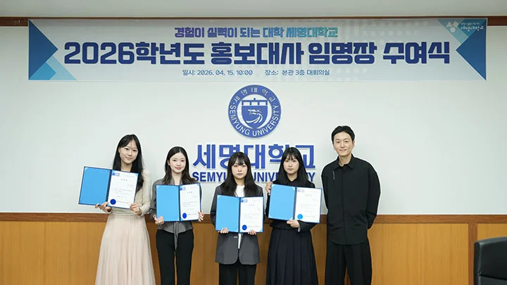 세명대학교(총장 권동현)는 15일 본교 대회의실에서 2026학년도 세명대 홍보대사 ‘세움(세명대의 아름다움) 10기’의 임명장 수여식을 실시했다.